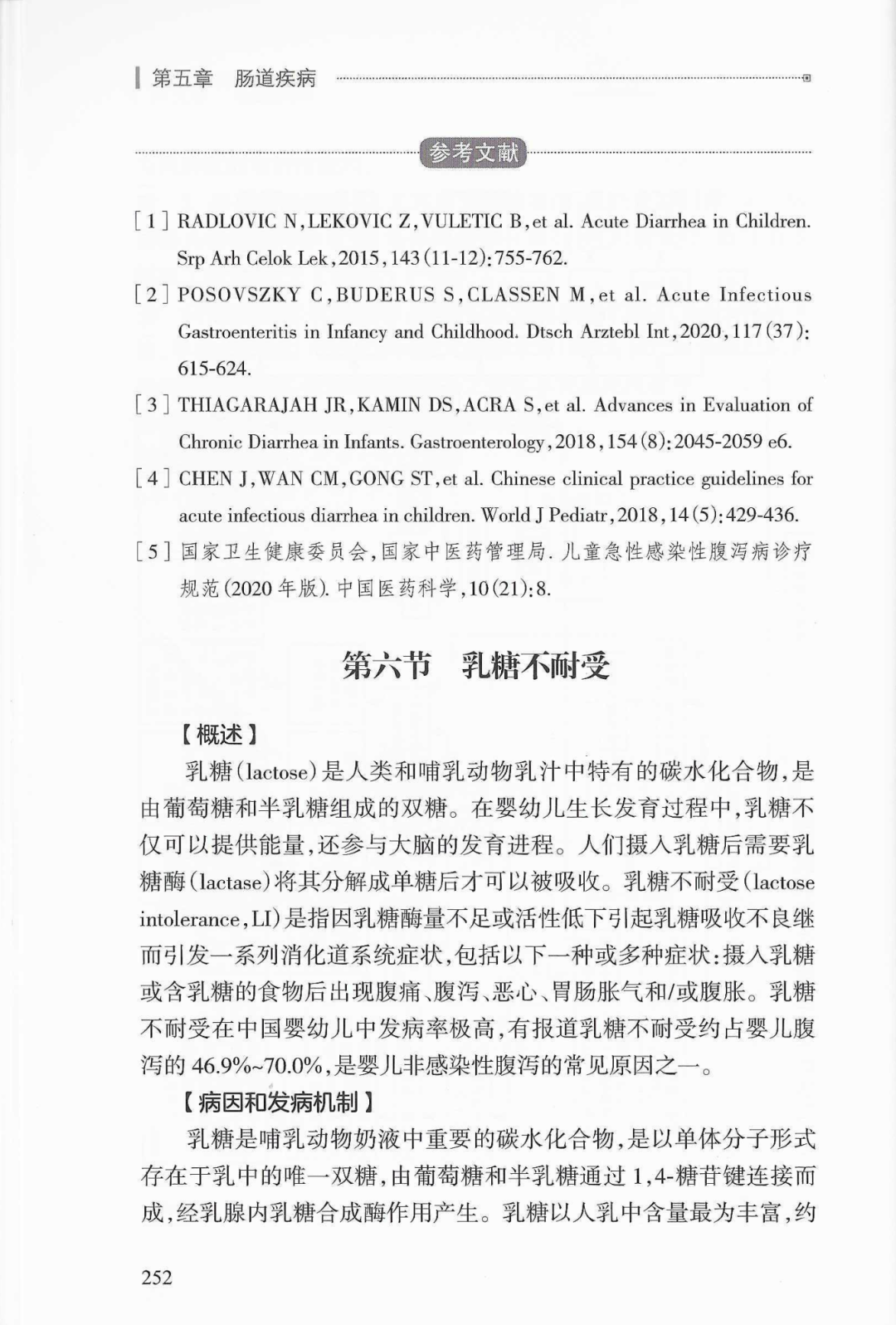 ● 乳糖(lactose)是人类和哺乳动物乳汁中特有的碳水化合物,是由葡萄糖和半乳糖组成的双糖。在婴幼儿生长发育过程中,乳糖不仅可以提供能量,还参与大脑的发育进程。人们摄入乳糖后需要乳糖酶(lactase)将其分解成单糖后才可以被吸收。乳糖不耐受(lactose intolerance, LI)是指因乳糖酶量不足或活性低下引起乳糖吸收不良继而引发一系列消化道系统症状,包括以下一种或多种症状:摄入乳糖或含乳糖的食物后出现腹痛、腹泻、恶心、胃肠胀气和/或腹胀。乳糖不耐受在中国婴幼儿中发病率极高,有报道乳糖不耐受约占婴儿腹泻的46.9%~70.0%,是婴儿非感染性腹泻的常见原因之一。