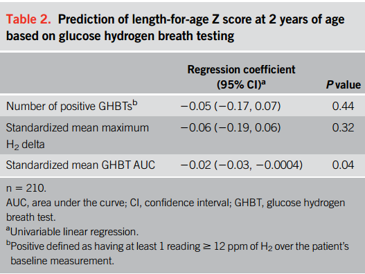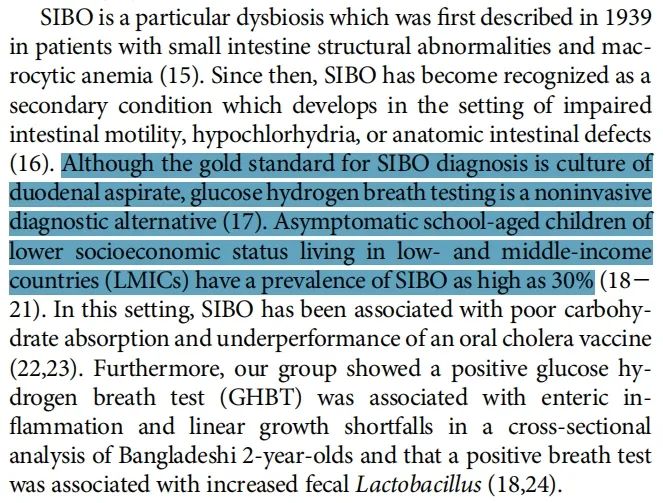 有研究表明发育迟缓和小肠细菌过度生长(SIBO)有关,但此前所有相关研究都是横断面的。该研究报告了中低收入国家(LMIC)中SIBO的首次纵向研究结果,利用葡萄糖氢呼气试验(GHBT)进行了一项为期两年的观察性出生队列研究,以确定儿童早期的SIBO是否预示着线性生长延迟。