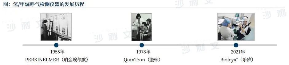 上个世纪50年代,英国诺贝尔奖获得者马丁(A.J.P.Martin)和辛格(R.L.M. Synge)联名发表论文,首次预言色谱流动相可以是气体,预测了气相色谱法(GC)的可行性。1955年,PERKINELMER(珀金埃尔默)推出全球第一台商品化的气相色谱仪。1978年,全球第一台用于检测碳水化合物吸收不良的氢气气相色谱分析仪QuinTron(奎顿)上市。2021年,我国第一台氢气甲烷二氧化碳气相色谱分析仪Bioleya®(乐雅)上市,我国已经实现国产技术的飞跃式发展。气体作为载气,突破对痕量(parts per million,ppm,10-6)氢气、甲烷浓度的测量,并经证实其在摄入底物后对肺泡中氢气、甲烷连续性分析上有应用价值。