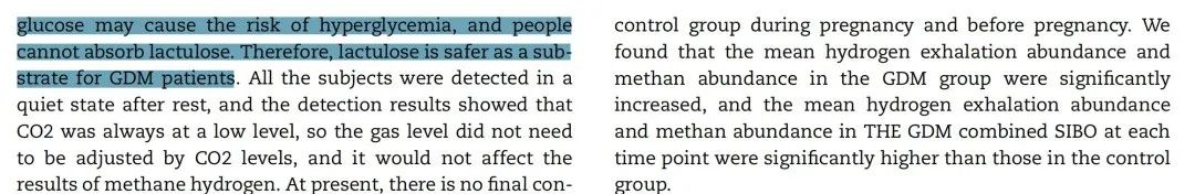 ▌ 关于氢呼气试验,底物采用葡萄糖可能引起高血糖的风险,而乳果糖无法被人体吸收,因此乳果糖作为GDM患者的底物是比较安全的。