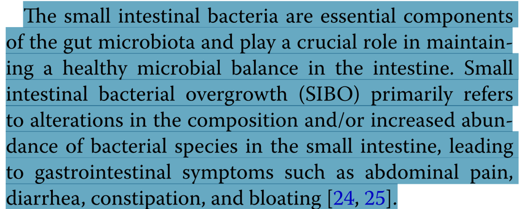 作为肠道菌群的核心组成部分,小肠细菌对维持肠道微生态平衡具有关键作用。小肠细菌过度生长(SIBO)主要表现为小肠内菌群种类异常和/或过度增殖,继而引发腹痛、腹泻、便秘及腹胀等消化道症状。