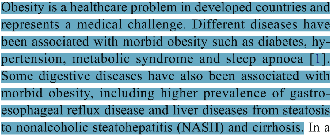 肥胖是发达国家普遍面临的健康问题,也是一项医学挑战。多种疾病与病态肥胖相关,包括糖尿病、高血压、代谢综合征及睡眠呼吸暂停综合征。此外,某些消化系统疾病也与病态肥胖有关,例如胃食管反流病的患病率升高,以及从肝脏脂肪变性到非酒精性脂肪性肝炎乃至肝硬化的肝病进展。