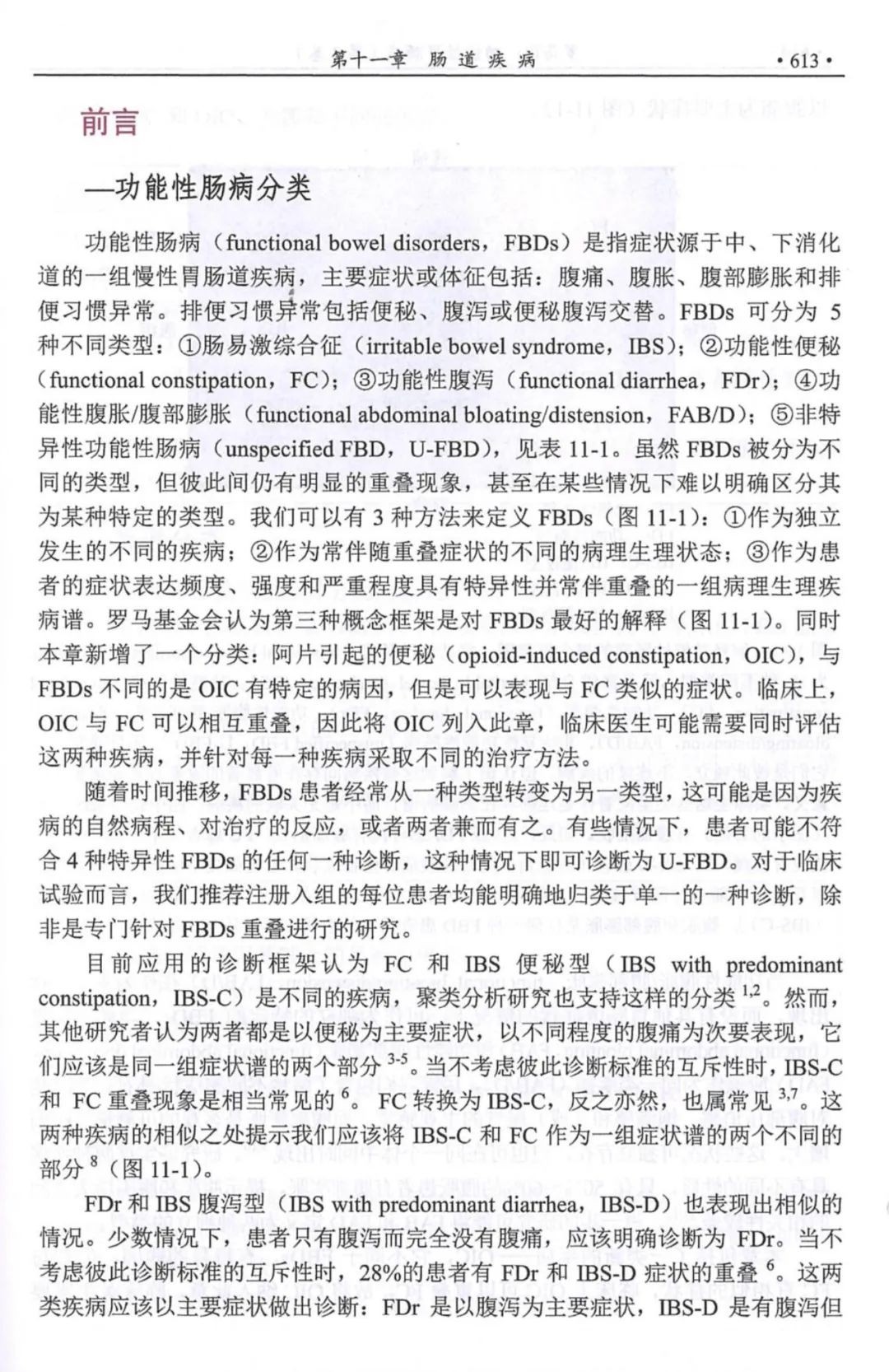 我们可以有3种方法来定义FBDs:①作为独立发生的不同的疾病;②作为常伴随重叠症状的不同的病理生理状态;③作为患者的症状表达频度、强度和严重程度具有特异性并常伴重叠的一组病理生理疾病谱。