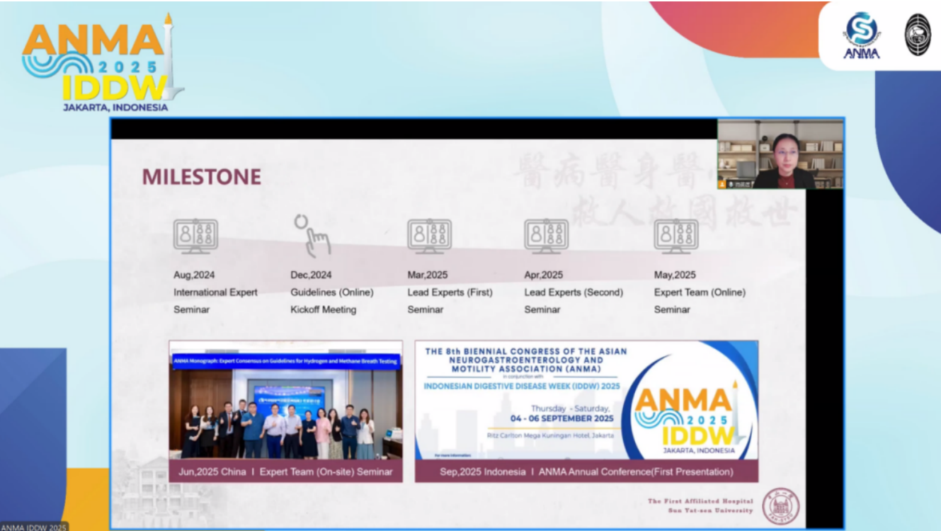 为此,亚洲神经胃肠病和动力学会(ANMA)联合中华医学会消化病学分会胃肠动力学组,共同制定的《氢气和甲烷呼气试验亚洲指南(简称“亚洲指南”)》,于2025ANMA年会暨印度尼西亚消化疾病周(IDDW)首次境外发布。该指南通过提供标准化的检测流程、统一的结果判读标准及临床应用规范,将有效解决诊断方法的差异性,提升呼气试验的诊断价值,并推进其在亚洲医疗机构中的规范化普及与应用。