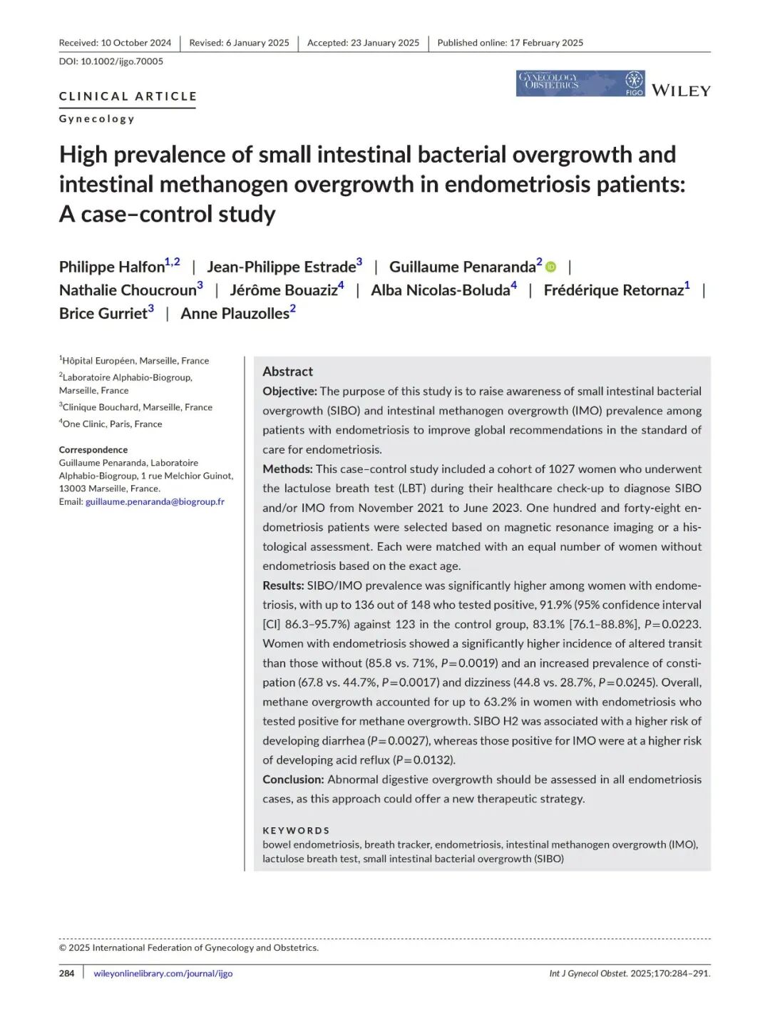 子宫内膜异位症患者中小肠细菌过度生长与产甲烷菌过度生长的高患病率