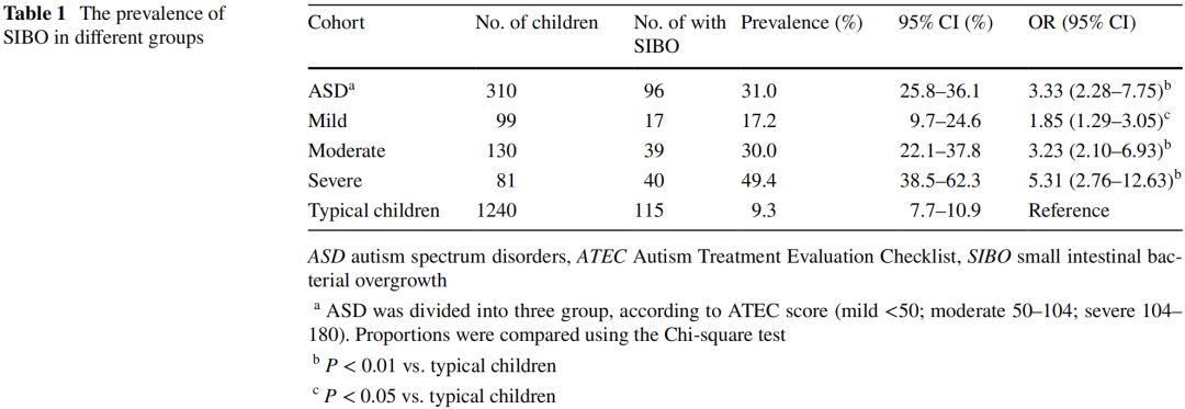 ASD儿童SIBO患病率显着增高,且与自闭症严重程度正相关