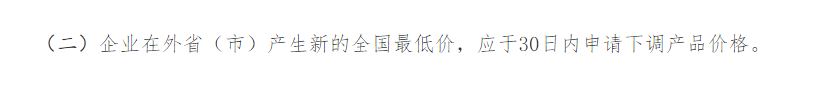 为此,《通知》再一次重申:企业在外省(市)产生新的全国最低价,应于30日内申请下调产品价格。