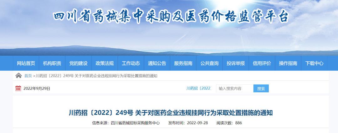 同月,四川省发布《川药招〔2022〕249号 关于对医药企业违规挂网行为采取处置措施的通知》,明确对企业通过变更企业及产品信息、重复申报、撤网再申报等方式,逃避价格监管、变相涨价等行为,中心将提取关键字段信息比对国家数据库、平台历史挂网数据库、产品禁用数据库等开展核查。