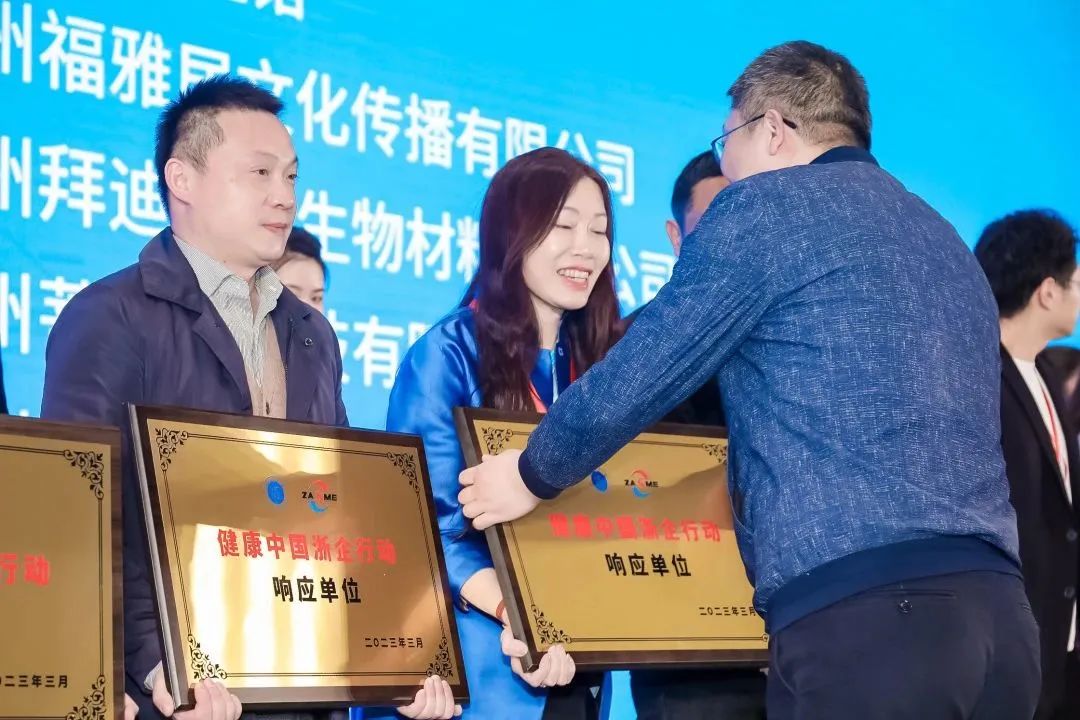 会上,乐翌生物被授予 "健康中国"浙企行动响应单位,感谢主办方对公司的认可和支持!乐翌生物日后将继续扛起大健康企业的责任与担当,为守护民众胃肠健康持续赋能!